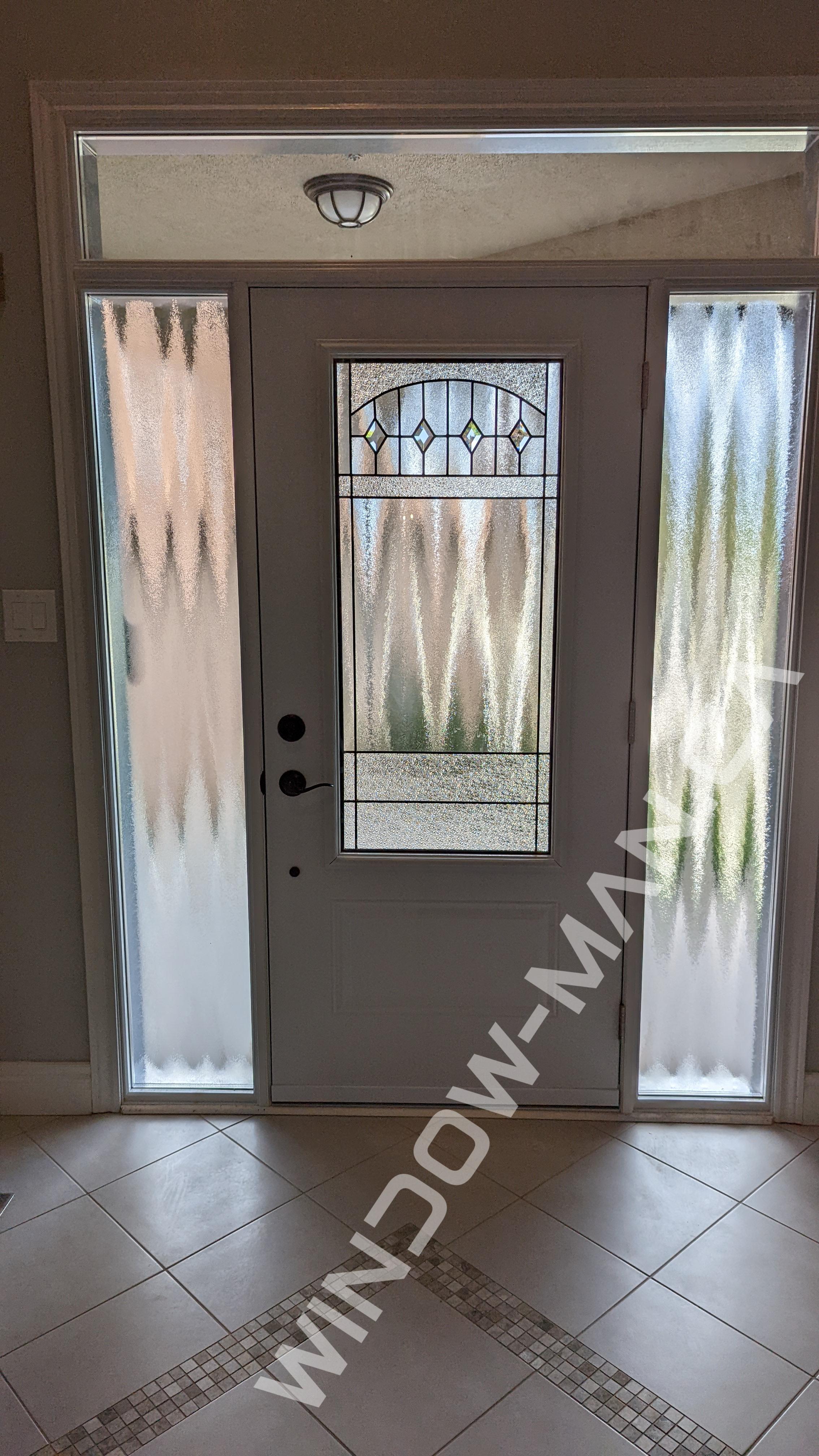 Brown Front Door with Sidelights in Nutmeg Stained Glass with 3 Point Locking System 8 foot