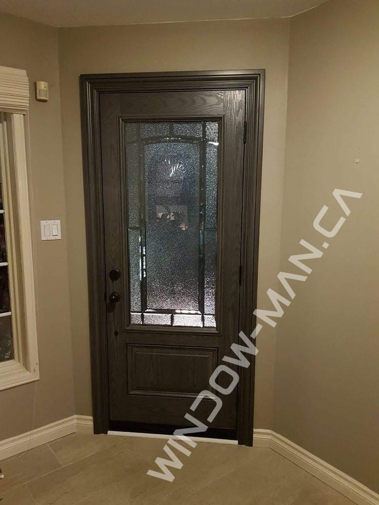 Black Entry Door With Glass Fiberglass Single with Blackburn 3/4 Wrought Iron Glass with Multi Point Lock Oak grain