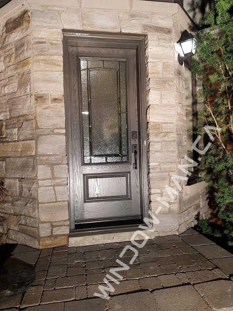 Craftsman Door Fiberglass Single in Black Small Glass with Grilles with 3 Point Locking System