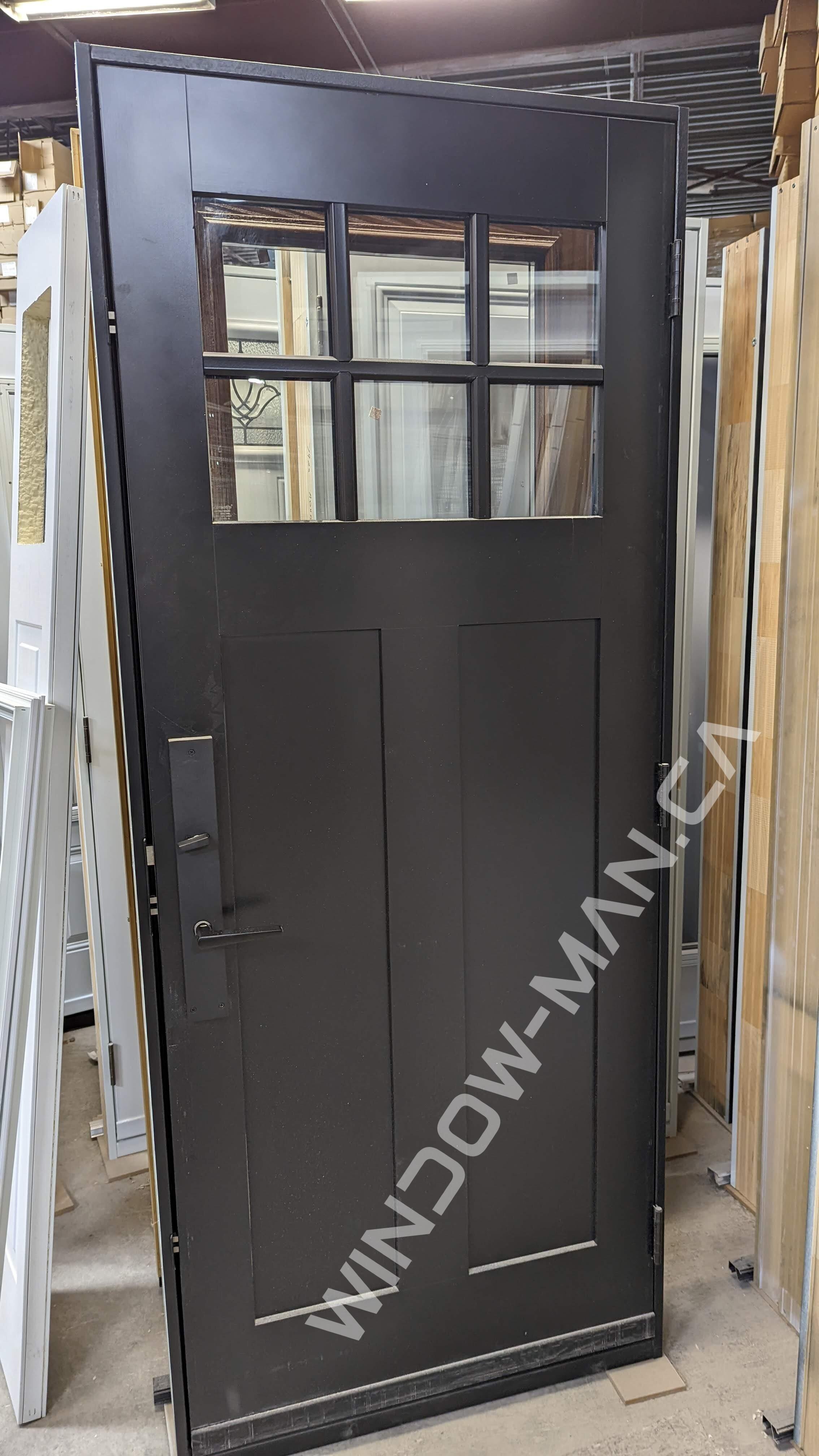 This fiberglass craftsman door offers a perfect blend of classic design and modern functionality. The all-black finish (exterior and interior) creates a bold and timeless statement. The small glass panel with grilles adds a touch of architectural detail while maintaining privacy. Equipped with a robust 3-point locking system in a black finish, this premium fiberglass door provides exceptional security and peace of mind. The right-hand hinge configuration and three-panel Craftsman design make it a versatile choice. Its energy-efficient construction also helps reduce energy costs, making it a practical and stylish front door replacement.