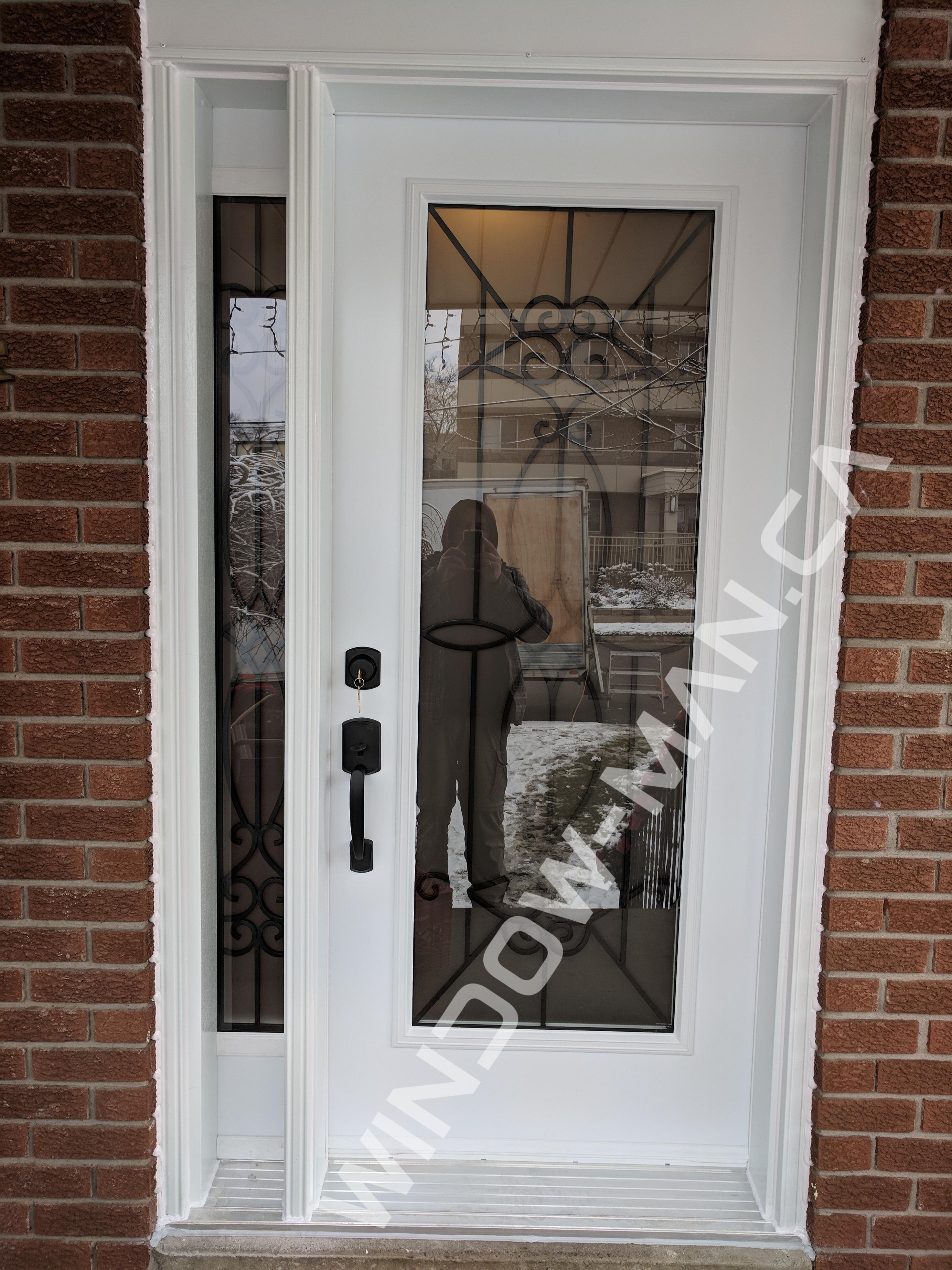 This steel entry door and sidelight features a full-length Blackburn wrought iron glass insert (22x64), creating a striking and elegant entrance. The factory white finish complements any home's exterior. Measuring 47x80, this energy-efficient door is both secure and visually appealing.