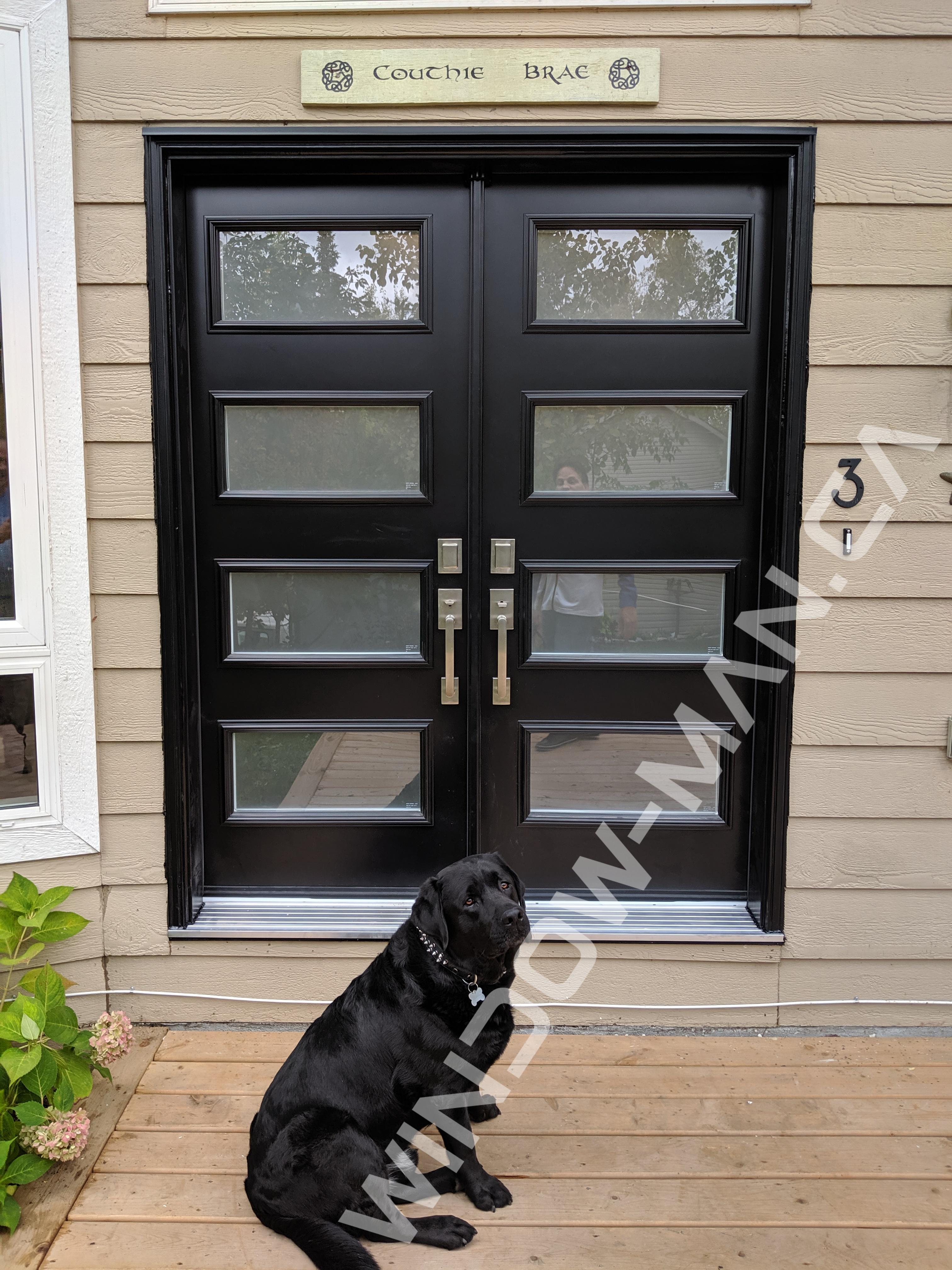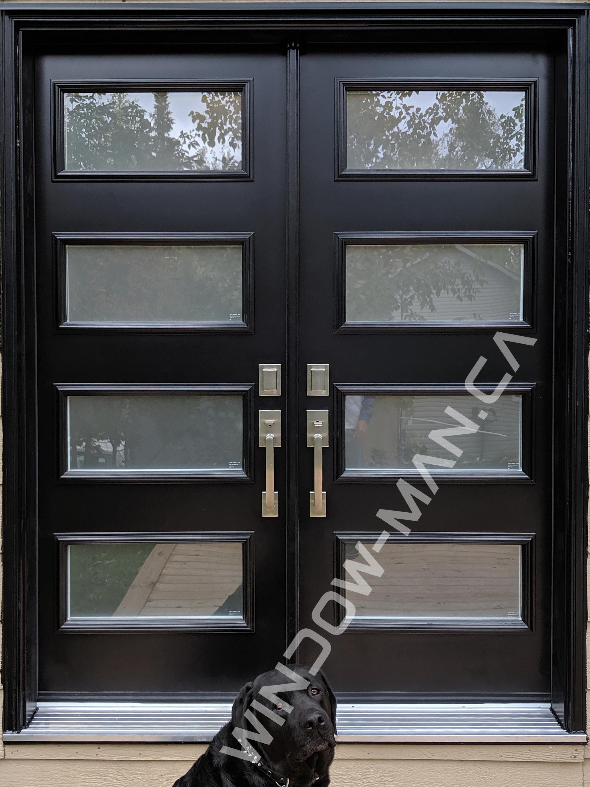 Paneled Doors With Glass Double in Black Shaker Private Glass with Pull Bar Handle narrow 28 inches, peephole
