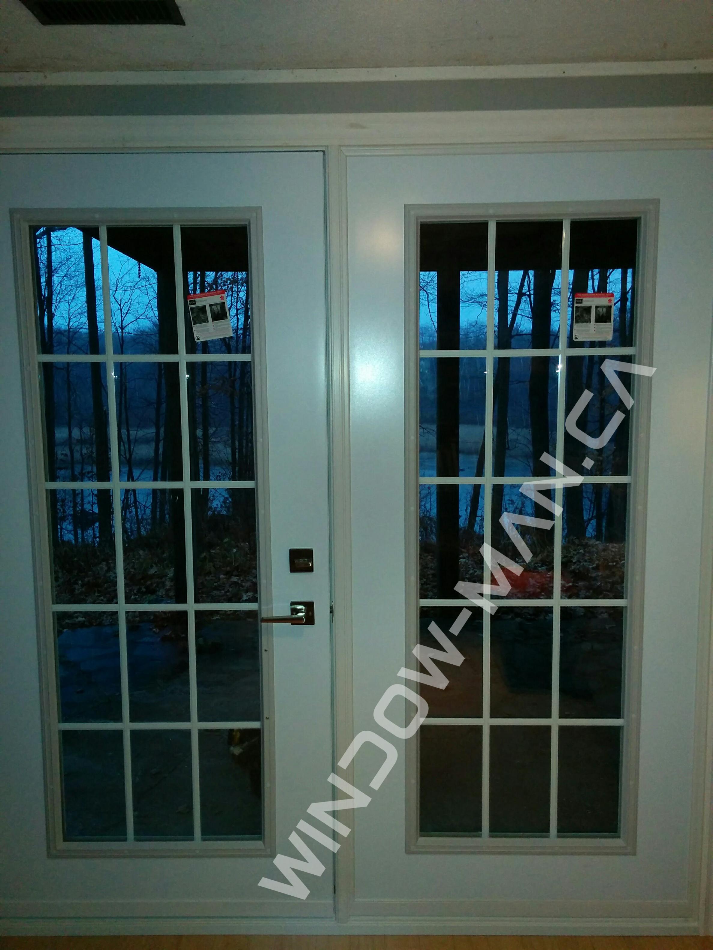 These french door patio doors offer timeless symmetry and brightness for back entryways. The full 22x64 inch glass panels with grilles provide elegance while ensuring optimal natural light. Constructed from energy-efficient steel and factory painted in crisp white, this right-hand door system is ready for easy GTA installation, including brickmould, casing, and a silver key lock.