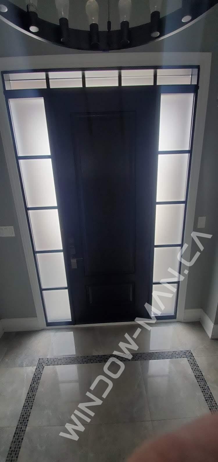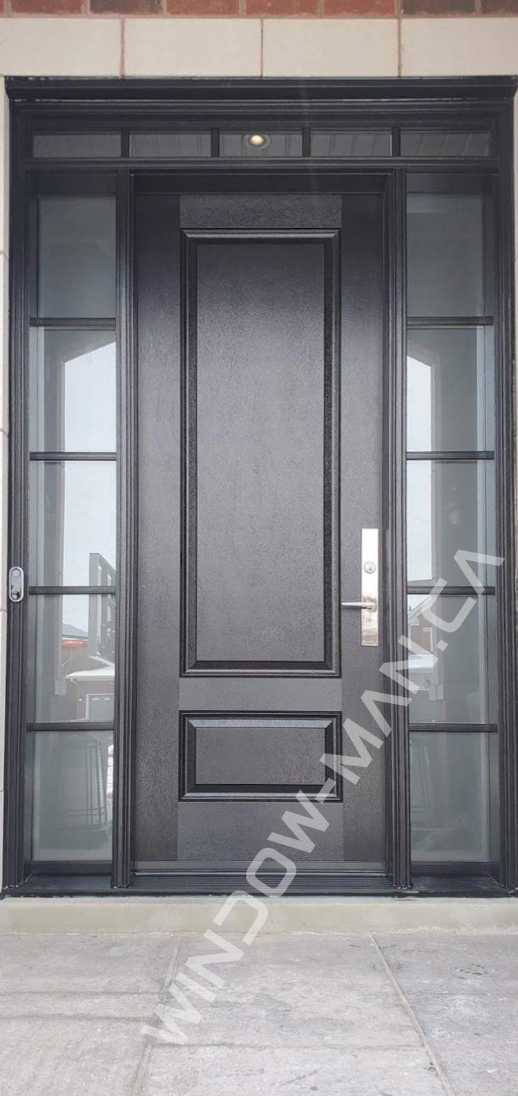 Craftsman Door Fiberglass Single in Black Small Glass with Grilles with 3 Point Locking System